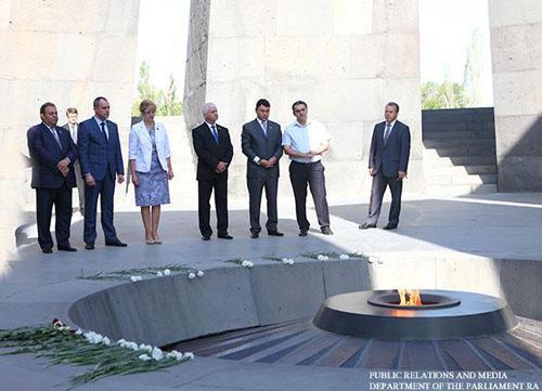Гости возложили венок и цветы к монументу памяти жертв Геноцида армян 1915г. и молчанием и преклонением почтили память 1,5 млн невинных жертв.