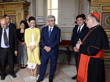Находящийся с официальным визитом в Святом Престоле президент Армении Серж Саргсян посетил сегодня Музеи Ватикана, где принял участие в церемонии открытия средневекового армянского хачкара.