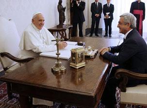 В рамках официального визита в Ватикан президент Армении Серж Саргсян 19 сентября провел личную беседу с Его Святейшеством Папой Римским Франциском.