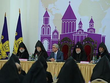 Президент Армении Серж Саргсян принял сегодня участие в Церковном представительском собрании, которое стартовало в V Первопрестольном Святом Эчмиадзине под председательством Католикоса Всех Армян Гарегина II.