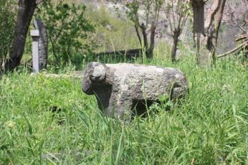 Хачкар не украли, а вот каменного барашка стащили – видимо, кому-то очень хотелось украсить свой двор таким раритетом.