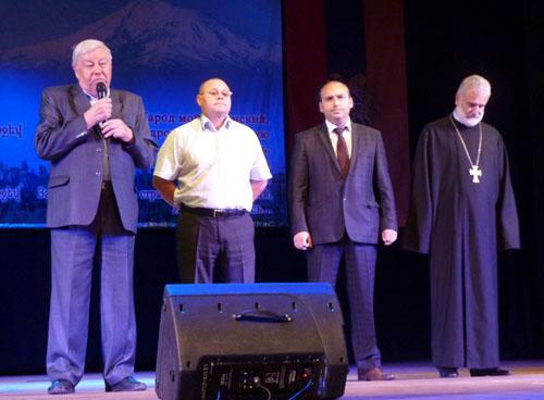 Открыть праздник армянской национальной культуры и поприветствовать артистов и зрителей на сцену вышли председатель Армавирской городской думы В.Сосновский, заместитель главы города С.Фролов, настоятель храма Успения Пресвятой Богородицы ААЦ протоиерей Тер Макар Тертерян и председатель МО САР г. Армавира Г.Карапетян.