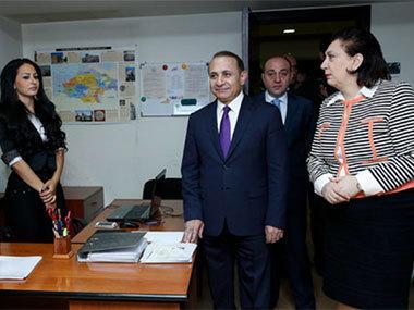 До начала мероприятия премьер Абраамян в сопровождении министра Диаспоры Грануш Акопян обошел министерство, ознакомился с условиями работы в подразделениях аппарата, побеседовал с сотрудниками.