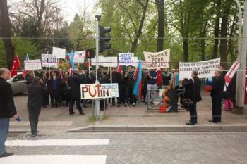 И еще один примечательный факт: на фотографиях с антиармянских акций, организованных Фатуллаевым (на фото четко видна его руководящая роль) в Страсбурге, наряду с азерпроповскими плакатами на первом плане красуется большой плакат с оскорбительной надписью в адрес президента Путина.