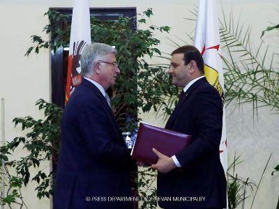Мэр Еревана Тарон Маркарян и руководитель муниципального образования городa Краснодар Владимир Евланов подписали соглашение о сотрудничестве. Соглашение было подписано в мэрии Еревана.