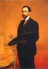 Теодор Аксентович (1859-1938) — выходец из семьи польских армян, и далеко не простой: в 1688 году патриарх рода получил дворянское звание и был записан в реестр польских дворян. Отец художника, пребывавший во Львове, был послан на службу в румынский город Брашов, где и родился Теодор. Вскоре семья вернулась во Львов, и вся дальнейшая жизнь художника связана с Польшей. Талантливый юноша учился в Мюнхенской академии художеств в Париже у знаменитого портретиста Каролюса-Дюрана. Вначале зарабатывал иллюстрациями в крупнейших парижских журналах, ездил по европейским городам. В 1895-м обосновался в прекрасном Кракове, где ему предложили работу в художественной школе, через несколько лет ставшей академией. Теодор Аксентович являлся одним из главным действующих лиц в художественной и общественной жизни города и Польши. Так, он основал женскую гимназию, а в 1897-м стал одним из инициаторов и основателей всепольского арт-общества SZTUKA, сыгравшего значительную роль в развитии национального искусства. В 1910-1938 гг. он ректор Краковской академии художеств. Работал Аксентович весьма плодотворно и особенно прославился как незаурядный портретист. В середине 80-х годов увлекся закарпатскими гуцулами, которым посвятил не одну сюжетную картину и сделал множество характерных портретов. Даже автопортрет в гуцульской одежде. Здесь уместно напомнить, что в историю гуцулов вписано и другое немеркнущее армянское имя — Сергей Параджанов, фильм-шедевр которого “Тени забытых предков” — настоящая гуцульская драма, разыгрывающаяся в фольклорном пространстве. Теодор Аксентович на рубеже XIX-XX вв. — один из ярких мастеров польского сецессиона, или ар нуво, или модерна. Многие его работы, в частности мастерские портреты — живописные и сделанные пастелью, не лишены салонности, избежать которой было, конечно, нелегко. Это особенно заметно в портретах различных дам и в ню. Таков и блестящий, в рост, автопортрет художника.