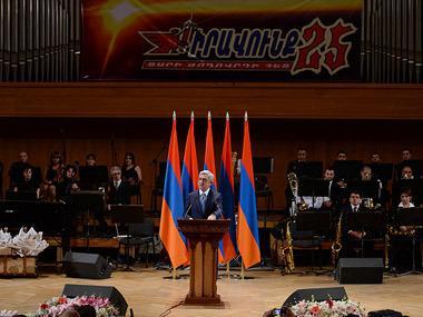 Президент Армении Серж Саргсян принял участие в торжественном мероприятии в честь 25-летия газеты «Иравунк» («Право»), которое состоялось сегодня в Большом зале филармонии им. Арама Хачатуряна.