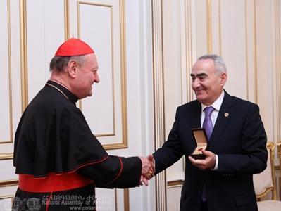 Как сообщили Новости Армении – NEWS.am в пресс-службе законодательного органа, Галуст Саакян высоко оценил деятельность Джанфранко Равази, направленную на признание армянской духовной культуры. Председатель НС Армении подчеркнул важность сотрудничества со Святым Престолом, особо отметив роль кардинала в этом деле. Галуст Саакян выразил озабоченность в связи с ситуацией на Ближнем Востоке и строжайшим образом осудил подрыв армянской церкви Србоц Наатакац в Дейр-эз-Зоре.
