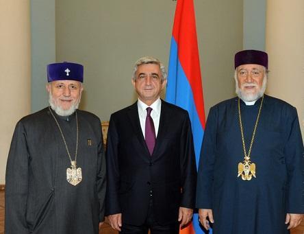 Президент Армении Серж Саргсян встретился с Католикосом Всех армян Гарегином Вторым и Католикосом Великого Дома Киликийского Арамом Первым.