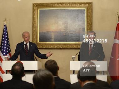 Вице-президент США Джо Байден в конце минувшей недели посетил с визитом Турцию. Известно, что итоги визита оказались неудовлетворительными для американской стороны: Анкара отказалась удовлетворить ожидания Вашингтона в вопросе борьбы с «Исламским государством» (ИГ). Но, независимо от результатов визита, на Западе, в частности читатели армянского происхождения, изучив распространенный Agence France-Presse снимок с совместной пресс-конференции президента Турции Реджепа Тайипа Эрдогана и Байдена, обратили внимание на достаточно примечательный факт. Об этом корреспондент Panorama.am побеседовал с политическим обозревателем Арменом Минасяном.