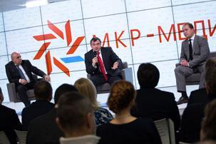 5 декабря в Омске состоялась пресс-конференция, посвященная открытию нового Мультимедийного производственного комплекса. В структуру самого технологичного в Сибири Мультимедийного производственного комплекса МКР-Медиа входят телевизионный аппаратно-студийный комплекс, радиовещательный комплекс и мультимедийный пресс-центр. В первой пресс-конференции, которая прошла на базе мультимедийного пресс-центра, приняли участие генеральный директор Межгосударственной корпорации развития Иван Поляков и руководитель активов МКР-Медиа в Армении Тигран Акопян.