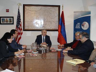 Ашот Гулян в офисе Армянского национального комитета Америки в Вашингтоне встретился с исполнительным директором этой организации Арамом Амбаряном и бывшим главой АНКА Каро Арменяном. На встрече обсуждалась нынешняя ситуация вокруг процесса мирного урегулирования карабахского конфликта, а также региональные и международные события. Кроме того, были затронуты основные направления сотрудничества в ближайшие годы.