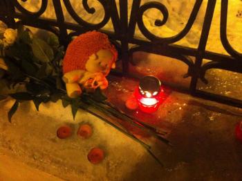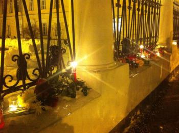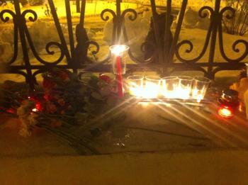 В Москве, у здания Посольства Республики Армения, люди выражают свою скорбь по жертвам трагедии, произошедшей в Гюмри.