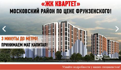 Одно из лучших агентств недвижимости - ООО «Первое Агентство Недвижимости» в тесном сотрудничестве с застройщиком ООО «ЛСР. Недвижимость – Северо-Запад» предлагает покупателям квартиры в жилом комплексе «Квартет». Обращаем ваше внимание на то, что строительство ведется в одном из престижных районов Санкт-Петербурга – Московском. Несмотря на элитность расположения жк квартет купчино, квартиры реализуются по ценам от застройщика, поэтому скажем сразу - это самая оптимальная цена. Дороже найдете, дешевле не будет, но есть и специальные предложения, скидки, рассрочка оплаты и, конечно же, ипотека, которую помогут оформить сотрудники агентства.