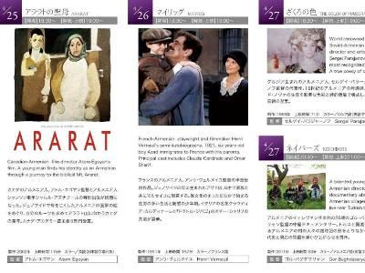 В Японии, в кинозале «Аплинк» Токио, по инициативе посольства Армении и японского комитета по координации мероприятий, приуроченных к 100-летию Геноцида армян, при поддержке Ереванского международного кинофестиваля «Золотой абрикос» и Министерства культуры Армении прошли вечера по показу фильмов, посвященные 100-летию Геноцида армян. В ходе вечеров были показаны фильмы «Арарат» Атома Эгояна, «Мать» Анри Верноя, «Цвет граната» и «Соседи» Гора Багдасаряна.