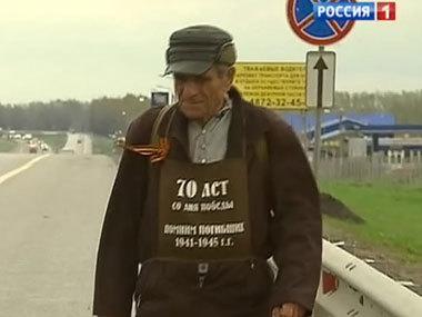 Сейчас уже Григорий Тепоян находится на подходе к Москве. Он прошагал уже 1700 км, чтобы встретить День Победы на Красной площади в Москве. В день дядя Гриша проходил по 40-50 километров. Каждые два часа – небольшой привал.