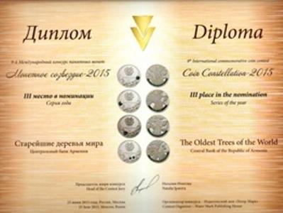 Как сообщили Новости Армении – NEWS.am в пресс-службе Центрального банка Армении, выпущенная Центральным банком Армении в 2014 году коллекция «Самые древние деревья мира» удостоилась третьего места в номинации «Коллекция года».