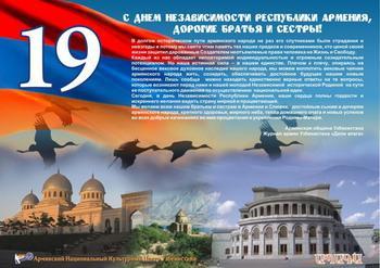Наряду с множеством плановых мероприятий, проводимых в течение года Ташкентским армянским культурным центром, празднование уже на протяжении многих лет дня Независимости Республики Армения окрашено своим особым неповторимым колоритом. Объясняется это тем, что данное знаменательное событие традиционно проводится в центральном парке отдыха имени Мирзо Улугбека, который является излюбленным местом отдыха горожан и пользуется особым почитанием столичной армянской общины. Исторически в прилегающем к парку жилом районе компактно проживало весьма значительное число граждан армянской национальности и многие поколения армян проводили часы своего досуга в его всегда желанной для южного региона тенистой прохладе.