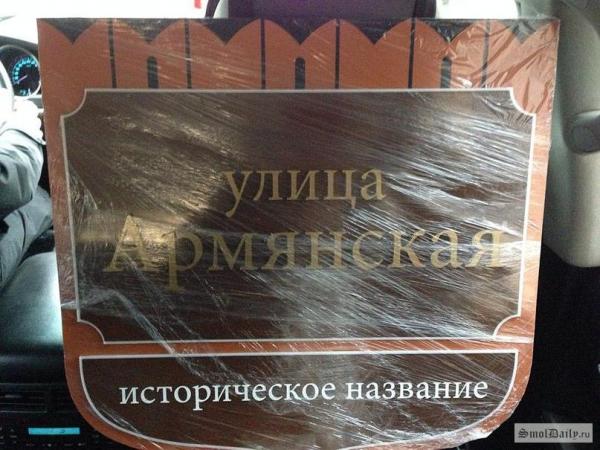 Армянская община во главе с её председателем, членом Общественной палаты Смоленской области Самвелом Сафаряном в течение полугода занимались всеми согласовательными процедурами, за свой счёт изготовили таблички в общем стиле с другими табличками исторических названий улиц. В ближайшее время состоится торжественное открытие о котором SmolDaily.ru подготовит репортаж.