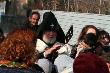"Католикос Всех Армян Гарегин II специальным Кондаком разрешил раз в год выносить Святое копье из сокровищницы для поклонения христиан, чтобы верующие смогли бы приложиться к нему и приобщиться к мощам", — говорит иерей Асогик Карапетян.