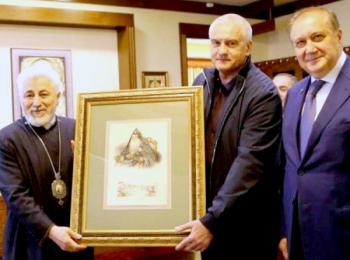 В рамках визита в Москву 16 октября глава Республики Крым Сергей Аксенов посетил резиденцию Российской и Ново-Нахичеванской епархии Армянской Апостольской Церкви. У входа в кафедральный собор Преображения Господня Сергея Аксенова и сопровождающую его делегацию встретил и приветствовал глава епархии архиепископ Езрас Нерсисян.