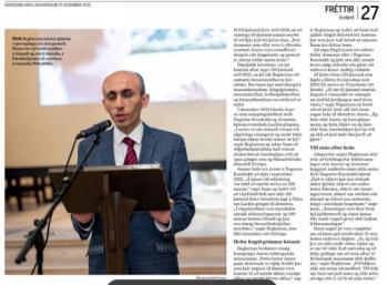 27 декабря 2025 года крупнейшая газета Исландии Morgunblaðið опубликовала эксклюзивное интервью с президентом «Союз Арцах» Артаком Бегларяном, которое состоялось во время его ноябрьского визита в Исландию. Ниже представлен полный перевод интервью.