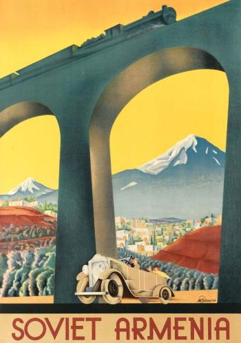 Парадокс! Взгляните на этот туристический плакат «Советская Армения». Страна, руководимая «оккупационными советами» и идеологией пролетариата, которая, казалось бы, должна была стереть все национальные особенности, тиражирует Арарат — священный символ Армении и армян.