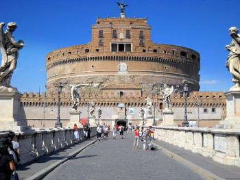 Это уникальное архитектурное творение было выстроено в 139 году от рождества Христова, свое название замок обрел в 590 году. По преданию, город настигла черная смерть - нашествие чумы. Многие горожане умирали, город был закрыт. Проклятие длилось до того времени, пока Папа Римский не увидел лик архангела Михаила на вершине здания. Через некоторое время беда миновала город, а величественное строение так и назвали замком Святого Ангела. А спустя некоторое время, в 16 веке, тут был установлен ангел с ...